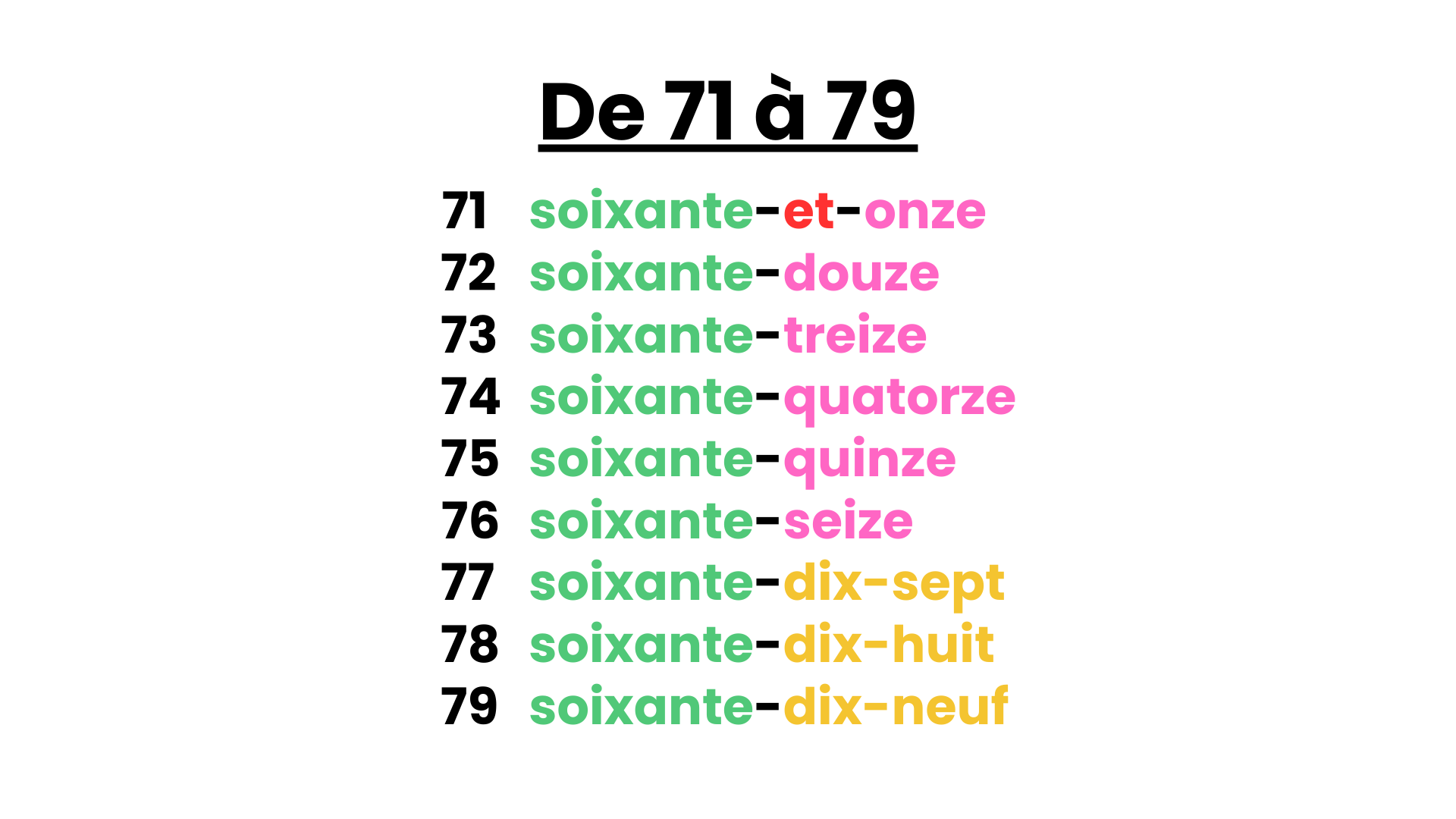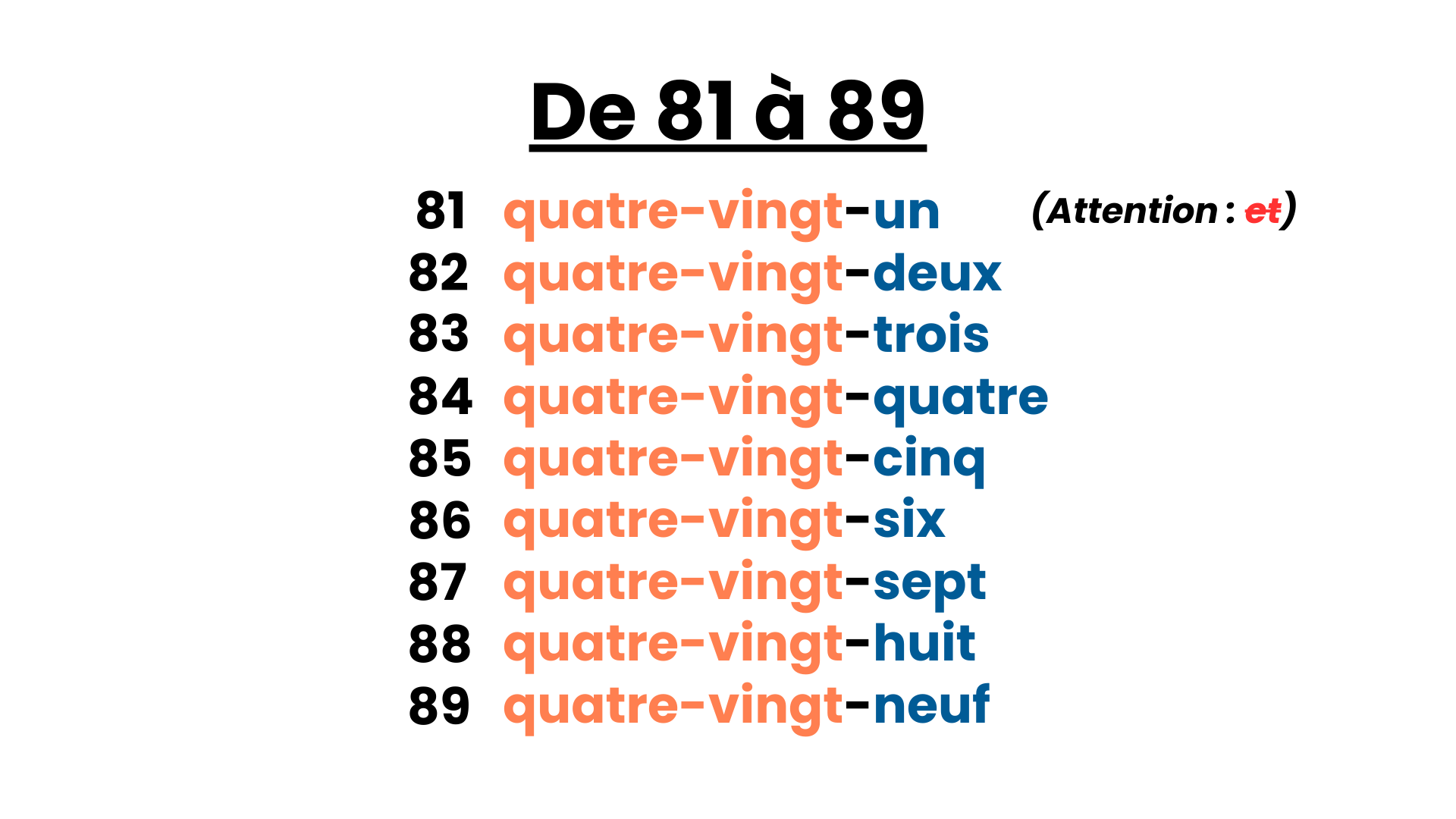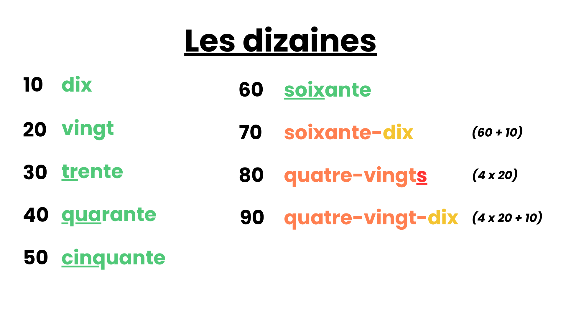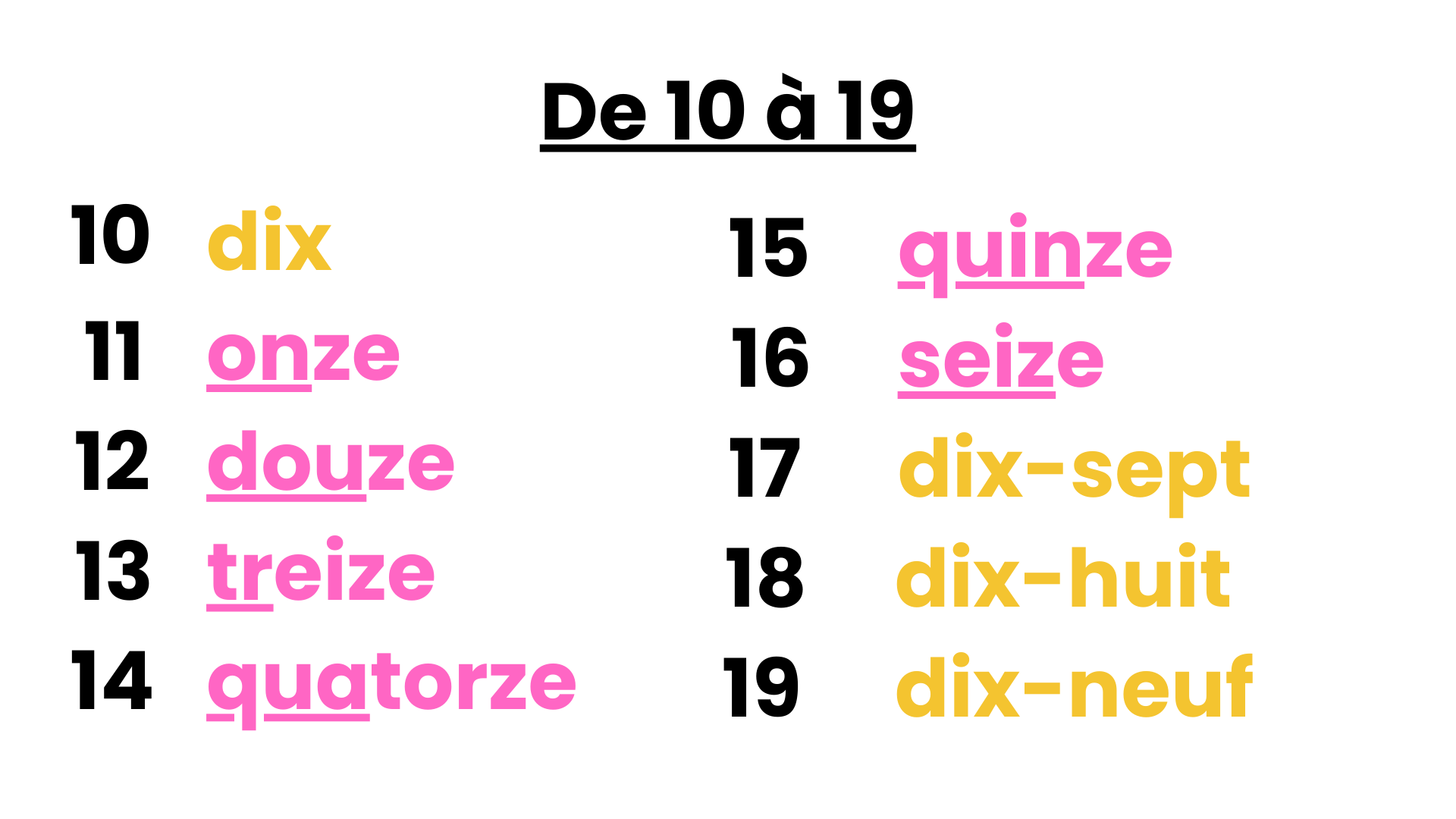 Learn to write numbers from 0 to 99 in French